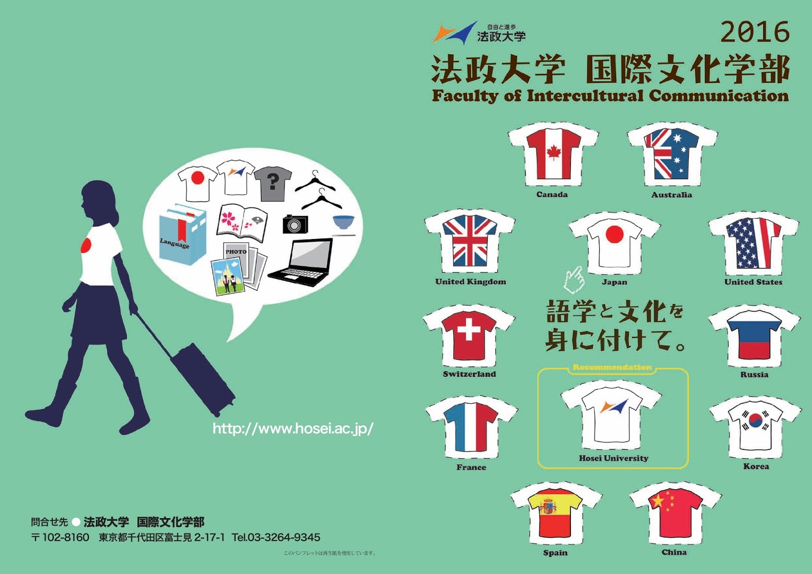 国際文化学部は近年、この学部パンフレットの表紙デザインコンテストを実施しており、